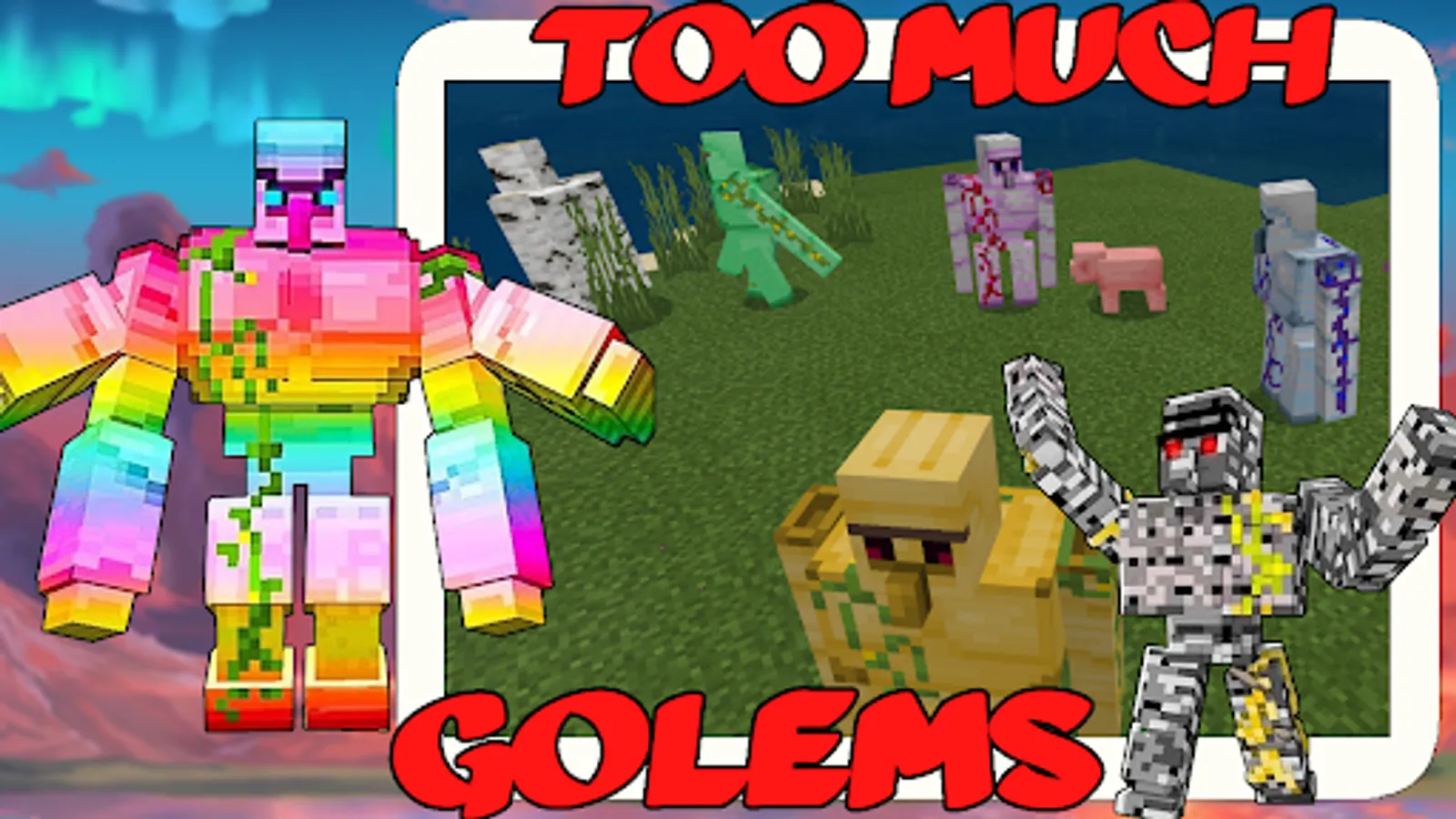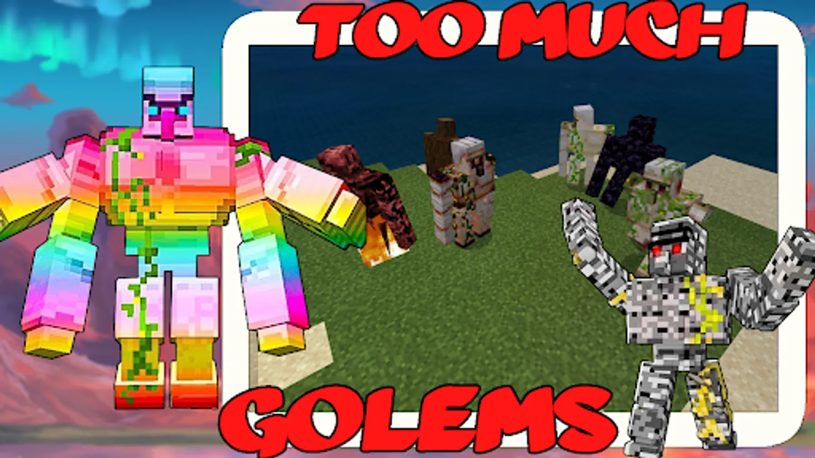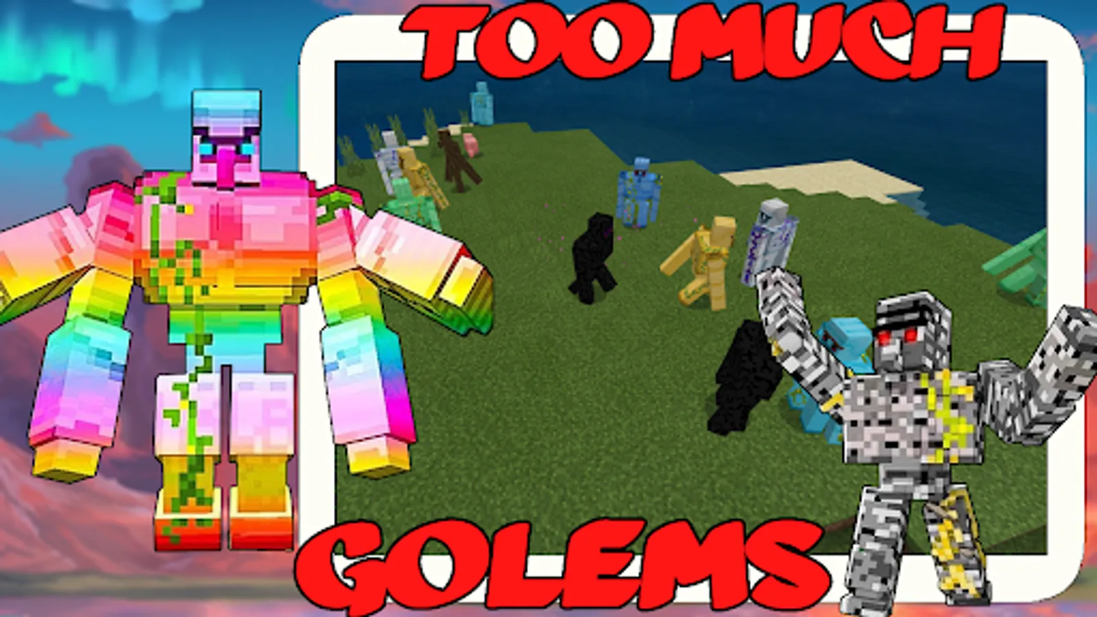 The pixel world will become saturated with giants - golems. Go on an adventure for pumpkin and iron blocks and use them to drag them from your inventory. You can walk around biomes and meet a golem, taming it you will get a companion of the defender, he will protect you from creepers, endermen, withered skeletons and ender dragons. Features - types of golems: quartz, magma, TNT, ice, stone, snow, earth, sand and many others. They perfectly accept the appearance of the environment. You can summon a creature with ease in creative mode or hard in survival mode. If you have not tamed a powerful pet, then you will be in danger because these stone rocks attack everyone in their way, villagers and players will be in danger. Now you can protect your home and the game will be safer if you take small steps. Each giant has a unique texture taken from in-game items and other blocks. Although they are giants, it is difficult to see them because their skin is camouflage. A tamed pet has an increased attack and health, the virtual world with such a friend will become safe, nothing will scare you anymore! The cube world will become suitable for safe adventures and thus the pursuit of achievements will become easier and the game more fun. The game graphics will become more detailed because biomes will be richer with cool golems.