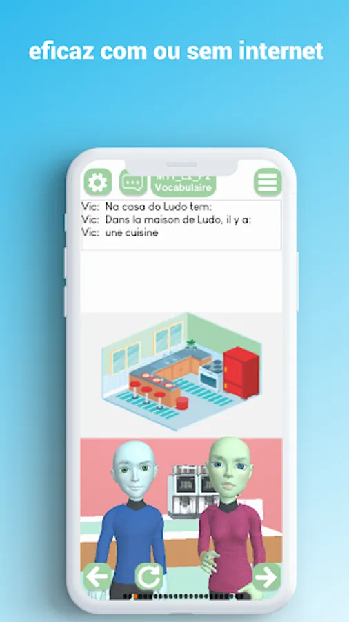 Basic-Français is an application that accompanies your first steps in learning French. Ludo and Vic, who were designed to represent all the peoples of this world and to promote gender equality, are invited in your everyday life to help you discover the French language with French dialogues adapted to everyday life and numerous illustrations to help you to associate new words in French.