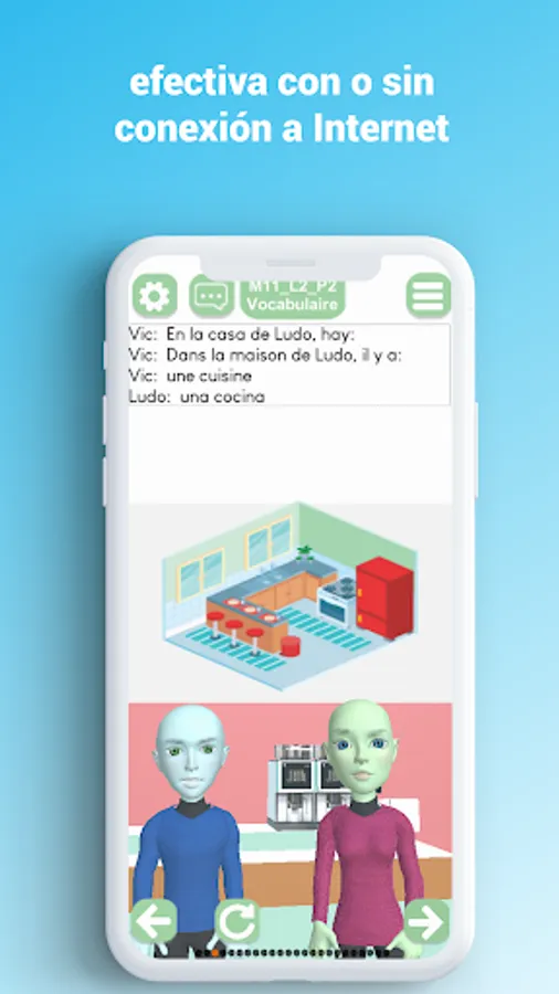 Basic-Français is an application that accompanies your first steps in learning French. Ludo and Vic, conceived to represent all the peoples of this world and to promote gender equality, are invited into your everyday life to help you discover the French language with the help of dialogues in French adapted to everyday life and numerous illustrations that will help you associate new French words.