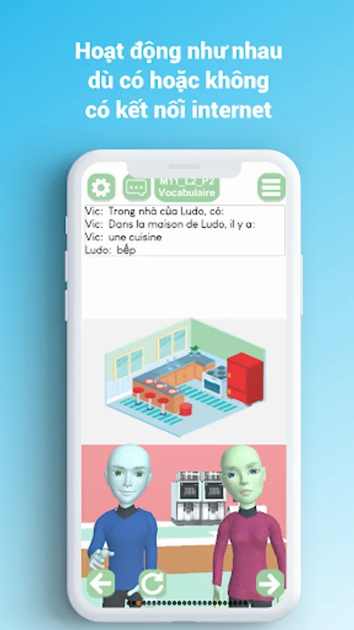 Basic-Français is an App that guides you through your first steps in learning French. Ludo and Vic were created to represent all the peoples of this World and promote gender equality. They allow you to explore French through dialogues (in French) that cover many aspects of everyday life. There are also many pictures that will help you increase your vocabulary