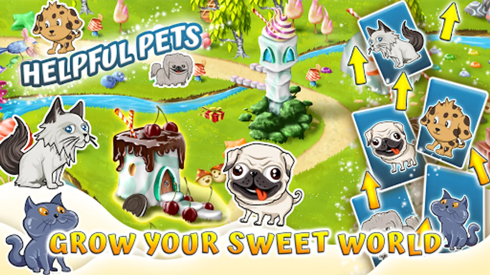A pet! Pets are a huge part of Icecream Factory & Cake Factory, we have different types of dogs and cats to choose from. Just make sure to feed enough snacks to the little cute pet as it will require it to grow up and help to produce even more icecream and cake!