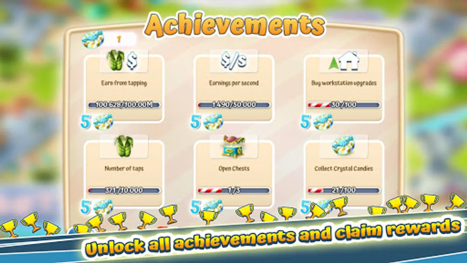 Use the snacks to level up cute little pet and it will reward by helping to tap and provide Icecream Factory & Cake Factory with passive income in classical clicker style!