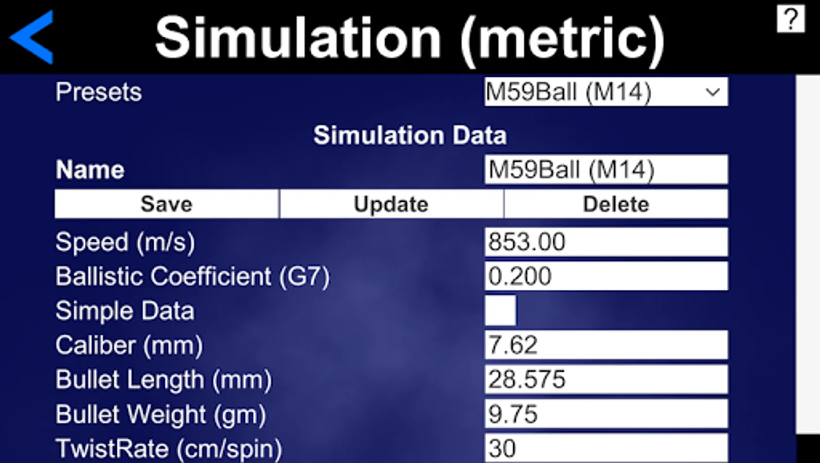 In this game you can configure the shooting parameters, the ammo, and the atmospheric conditions. The most relevant factors about external and internal ballistics are taken into account, so it's the best interactive simulator available.