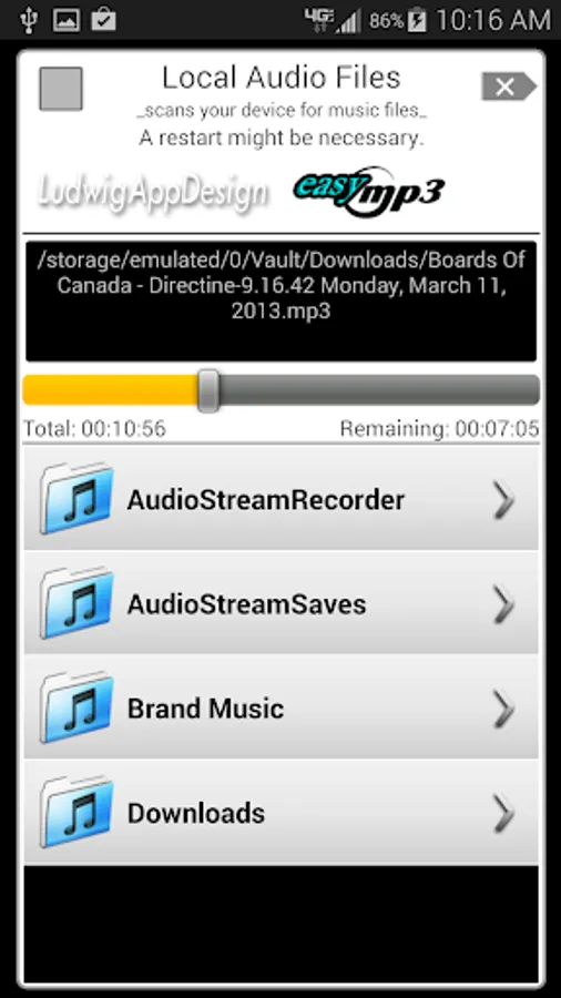 • Includes "Easy-MP3" (see 5th screenshot); for fast access to your local MP3 files;