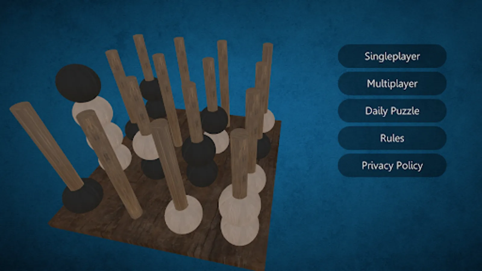 Starting with white, each player takes turns placing their stone on a 4x4x4 grid.
