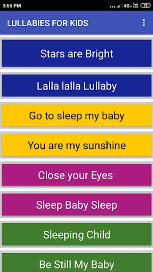 In this app we are providing you a lot of Lullaby Songs with their music and lyrics. These songs will help you to sleep your baby.