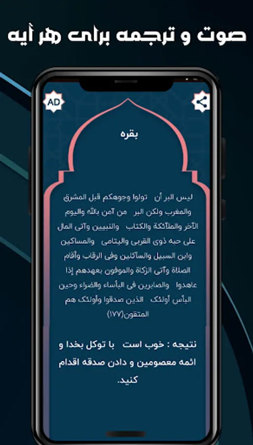 Separation of surah, verse and page number of Quran along with the text and meaning of the desired verse