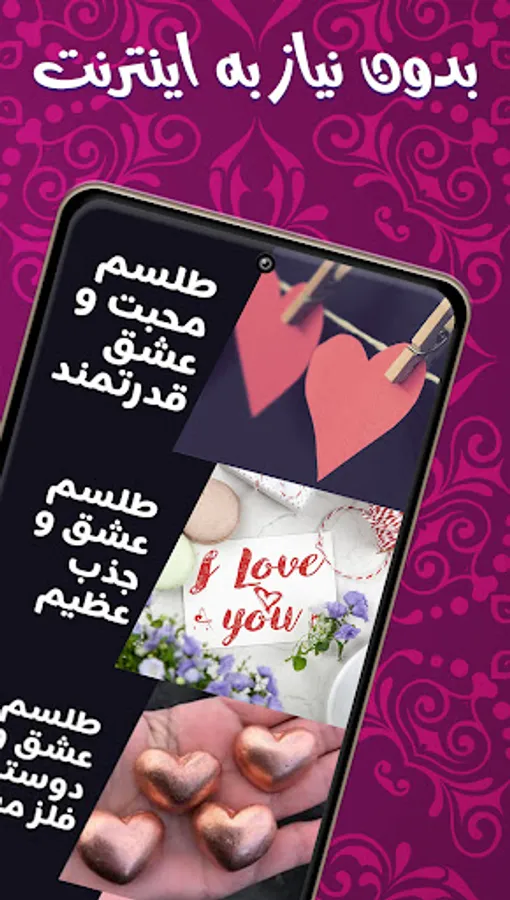 The spell of love: The spell of love is wonderful and out of reach of the public, as opposed to the conventional sciences. The subject of this prayer is strong love and the prayer for achieving extraordinary and mysterious love, the awareness and control of which are thought to give man the ability to do extraordinary things. The prayer of strong love and the prayer of reaching love is a very strange field. Specializing in the spell of love: The spell of love is not a difficult task. So to have the spell of love: act the spell of love and do not miss the strong prayer program of love and the prayer to reach love. In the prayer of strong love and the prayer of reaching love, we have everything you need. Learn the prayer of strong love and the prayer of reaching love with this application. The prayer of strong love and the prayer of reaching love have been prepared from authoritative religious sources.