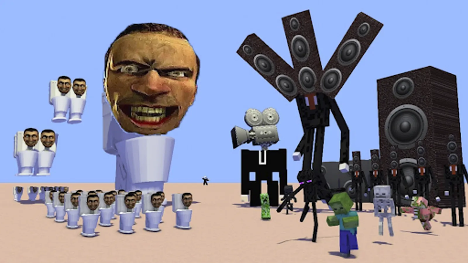 Speakermen are characters from series Skibidi Toilet who join your fighting between toilets and cameraman on new MCPE map.