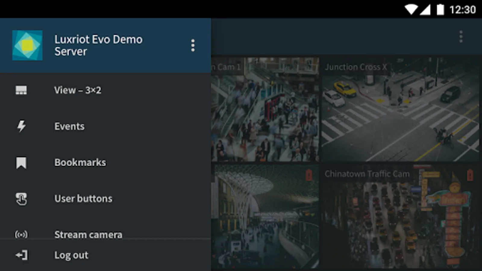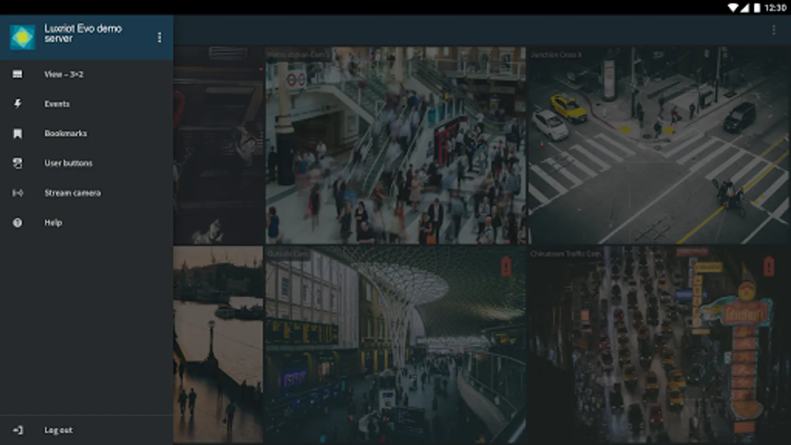 Luxriot EVO Mobile is a free Android application that allows you to access new generation Luxriot EVO Servers' live and recorded video streams using your smartphone or a tablet from almost anywhere. This easy to use application allows simultaneous multiple camera monitoring. You are always in control of the situation with Luxriot EVO Mobile.