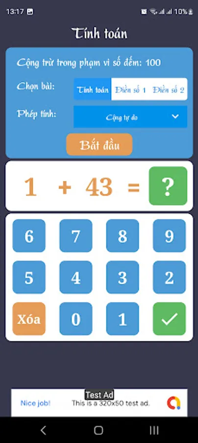 With a simple and friendly interface, the application provides a variety of exercises from simple addition and subtraction to memorized addition and subtraction. Users can choose the difficulty suitable for their level and practice time.