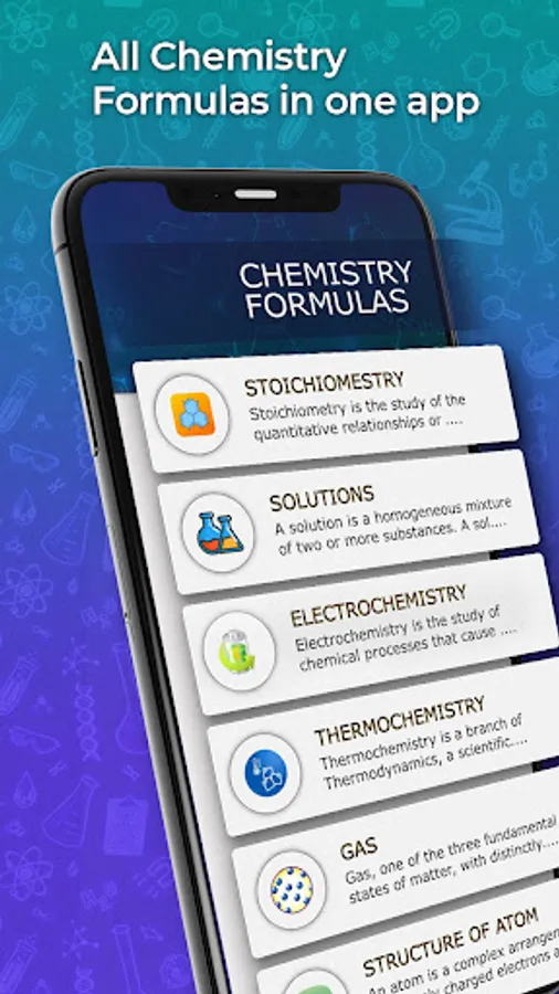 Let this chemistry formulae app to be your chemistry teacher Learn chemistry step by step.