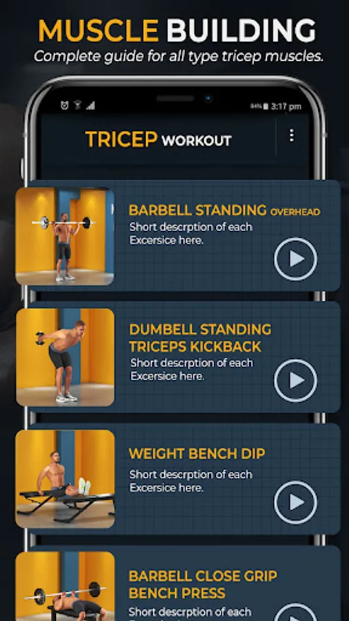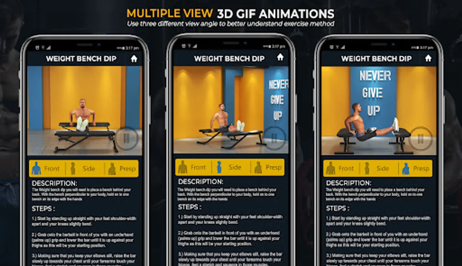 Triceps are the visible handsome parts of your body. Triceps workouts and triceps exercises app has the ideal solution to your triceps extensions. Ideal for triceps muscles and tricep stretch. it has effective tricep press exercises and tricep workout with dumbbells. Triceps Workout App includes all triceps exercises to build a bigger and stronger triceps with workout plan at gym. Just follow these simple and effective triceps workout plans, helps to get muscular triceps at gym. Your triceps workout at home app for your triceps dips and triceps extensions.