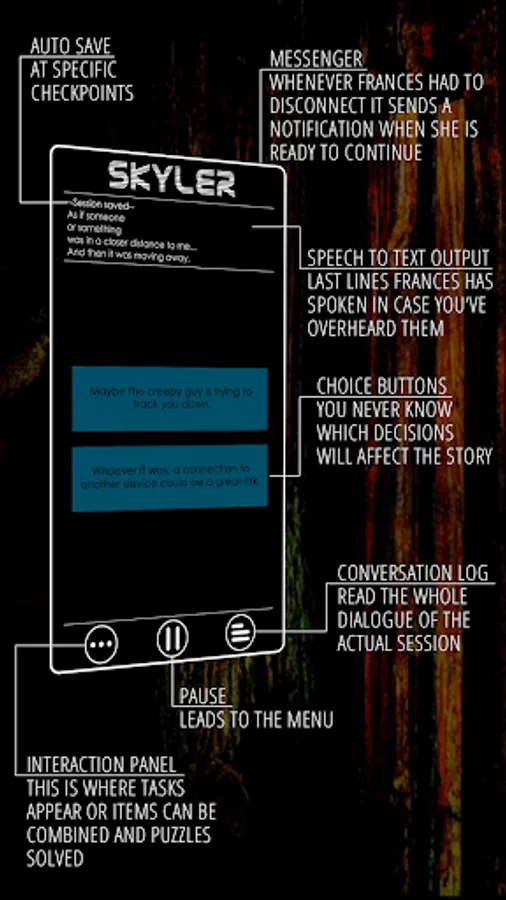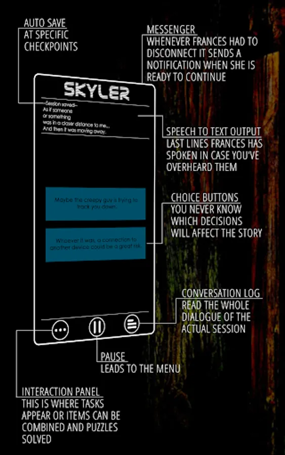 Connect into the eerie world of TGWSTW through the Skyler messenger. Make decisions and solve puzzles to shape her fate in this epic audio adventure.
