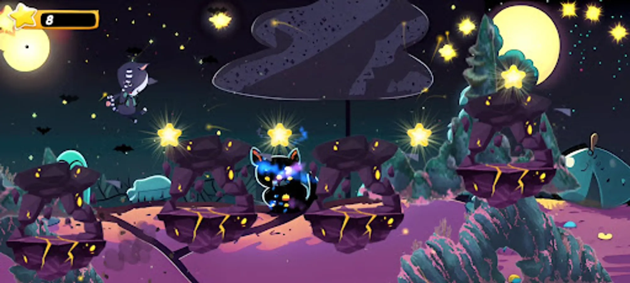 "Tap to make Whiskers jump and collect stars while avoiding falls in Meow Adventure. It's that simple! Ready to play?"