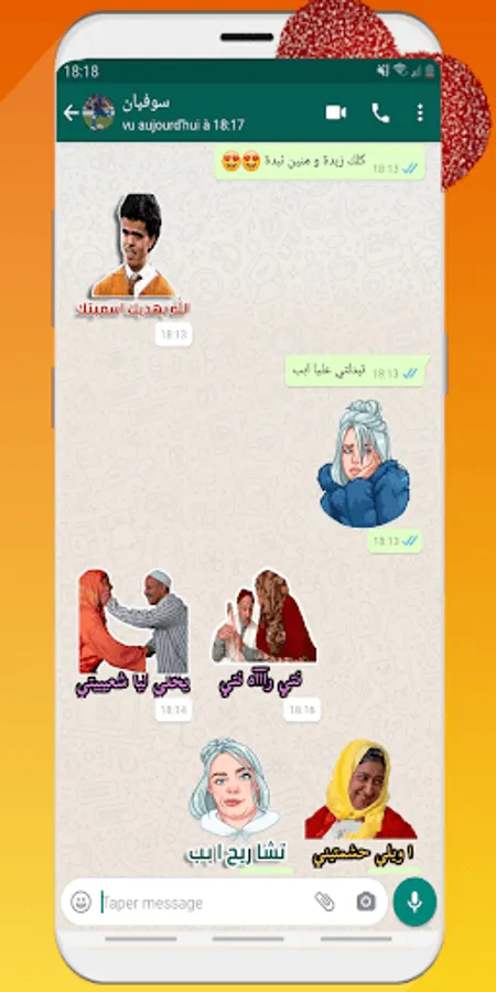 You will find in this application: Arabic funny stickers, kebbour stickers, calata and beloved in addition to Nipa and even poetry, for lovers of roses, we are pleased to inform you that we have added flowers and roses stickers to express love and congratulate a blessed Friday.
