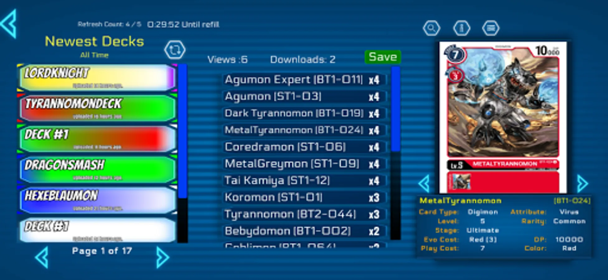 -Deck Building - Build your own decks in the in app Deck Builder! From there, you can upload them to our server and share them all over the world! Or, you can choose to browse decks that have been uploaded by other users and download them for yourself!