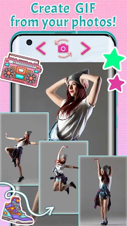 Downloading this "gif app" is the best decision you could possibly make since it allows you to choose your own photos to add to the animation you want to make. What is more, you can decorate your camera pics with amazing stickers for photos to make your creation even more interesting!