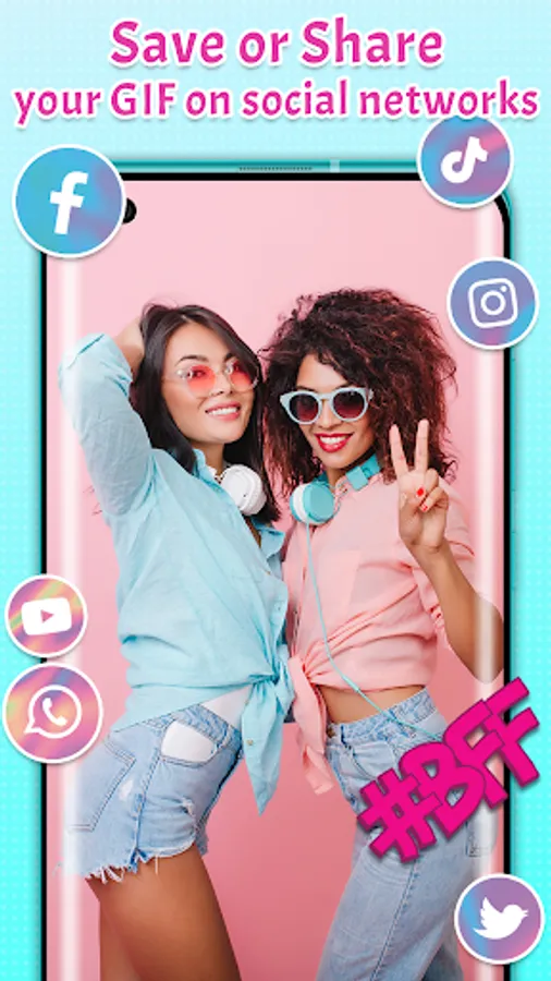 Be creative! Use this magical gif maker, upload your pictures, make funny animations and share them on social networks! Start using your skills in the best possible way! Become the best gif maker on the planet in a matter of seconds and win the race for the most creative photo editing, thanks to your new favorite app!
