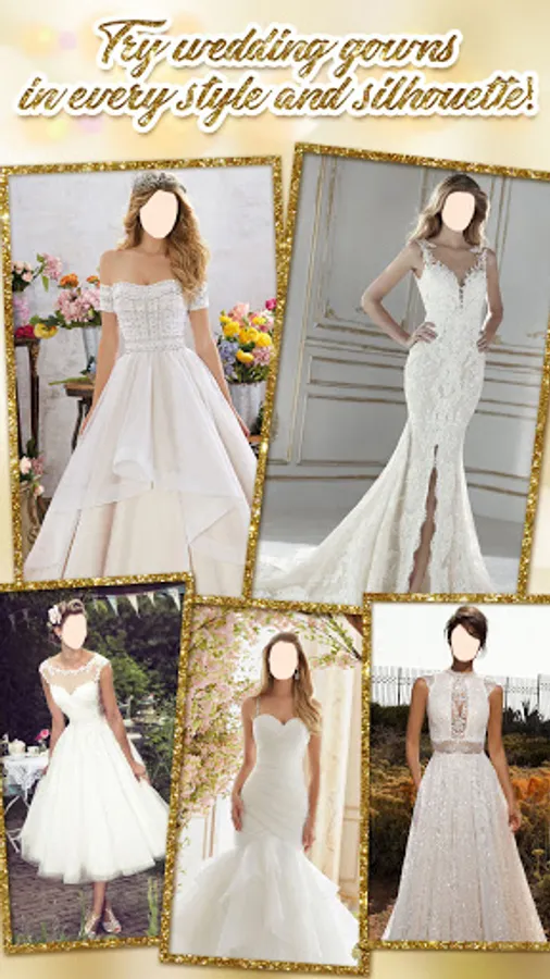 Welcome to the "world of brides"! Download as soon as possible and try dresses of any shape and design. Use these beautiful photo manipulations to change your look. Download this amazing "free app" and enjoy in making montages. Get wedding dress inspiration with this free app.