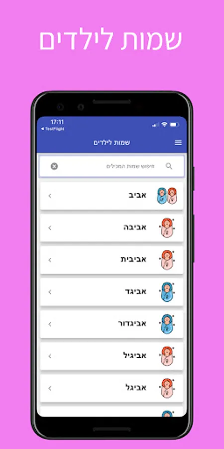 * Choosing a name for the baby from a database of about 2000 names for boys and girls.