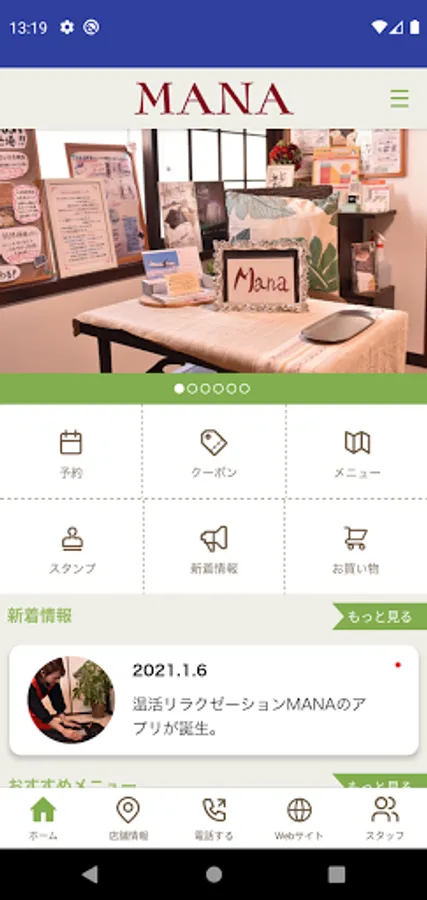 The official app of Warm Relaxation MANA is now available. Through the app, you can receive new information and deals on "Warm Relaxation MANA" in real time. In addition, you can check and make reservations for menus and desired time zones from your smartphone at any time. By installing the app, you can use "Warm Relaxation MANA" more conveniently and easily.