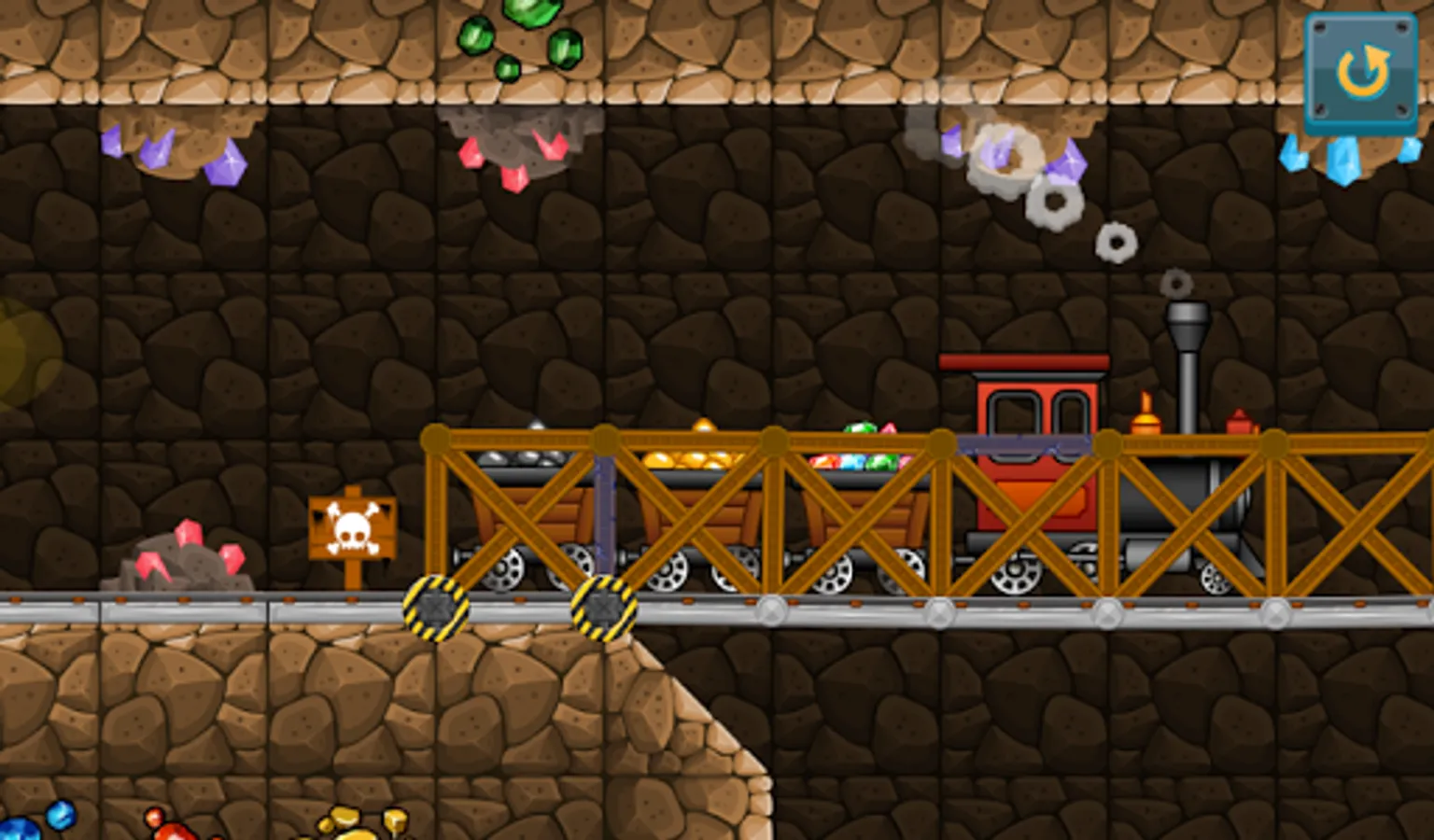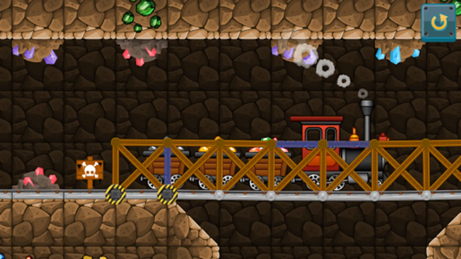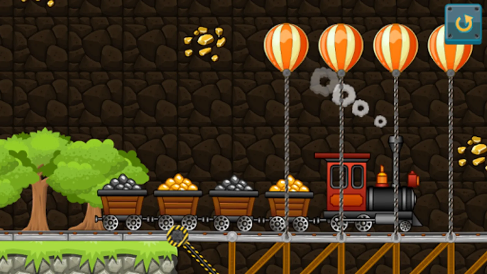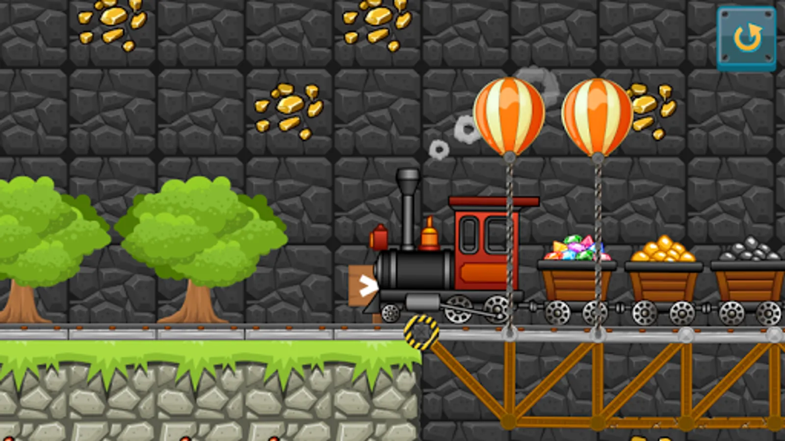Construct railroad bridges using different materials: wood, steel, reinforced steel, ropes and balloons. Polish your creation until a steam train can pass safely. Avoid building simple box constructions, place X or inside the box so that it becomes stable. Watch out for blue and red stress on bars while testing, or the bridge can fail.