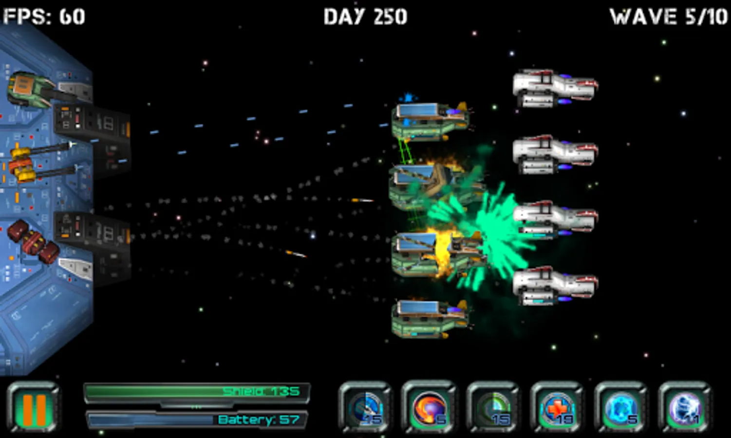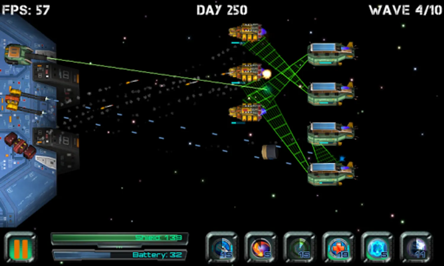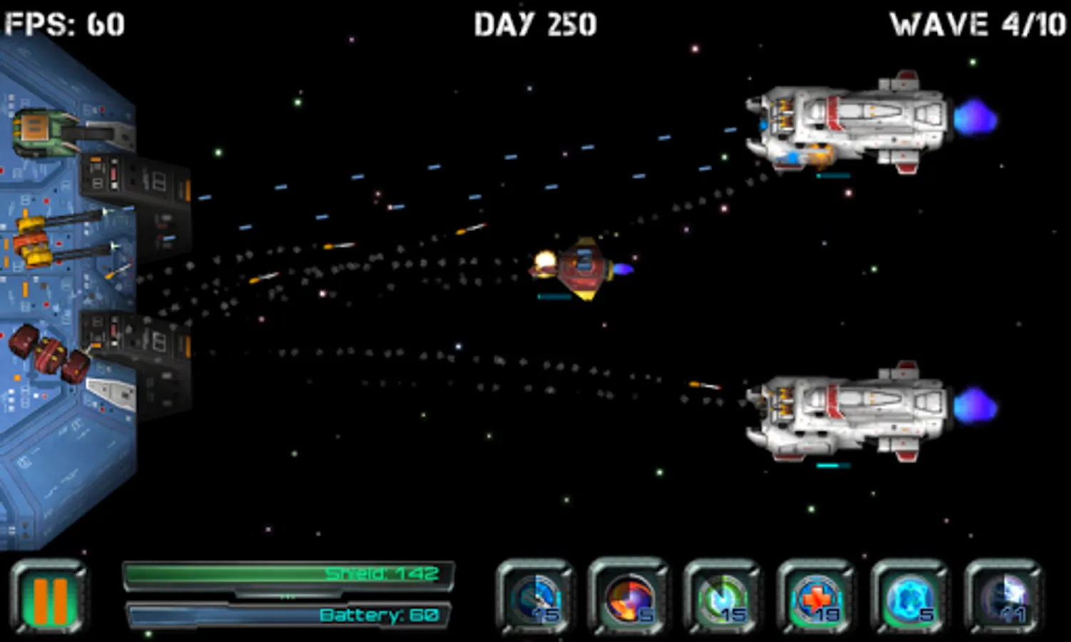 Intergalactic Council has assigned you a task to defend an important space station against endless space pirate attacks. You will command four space officers, who is in charge of turrets, scanners and other facilities.