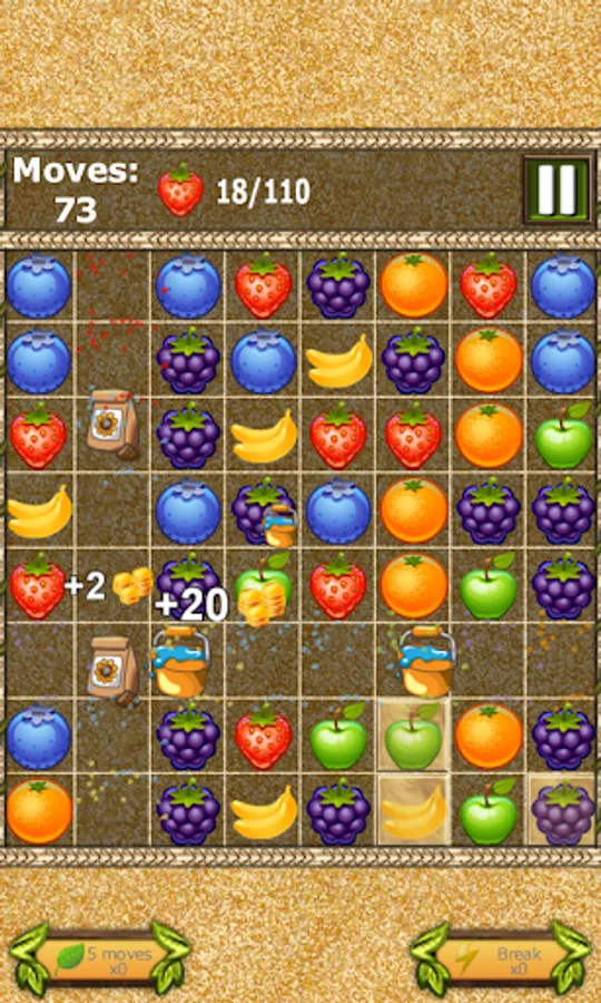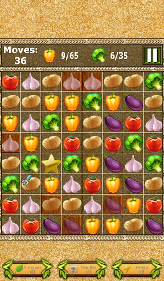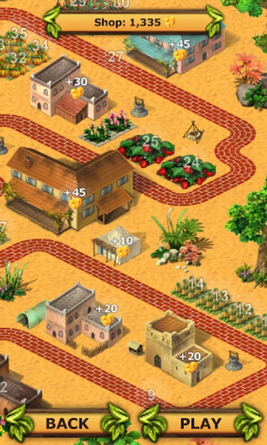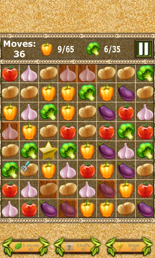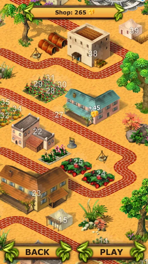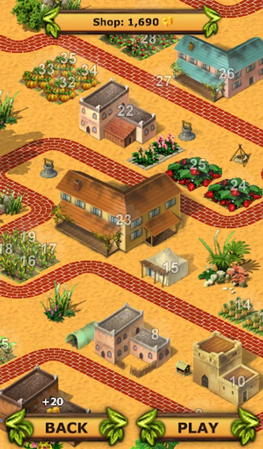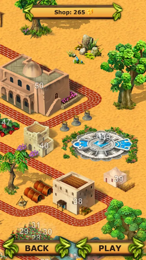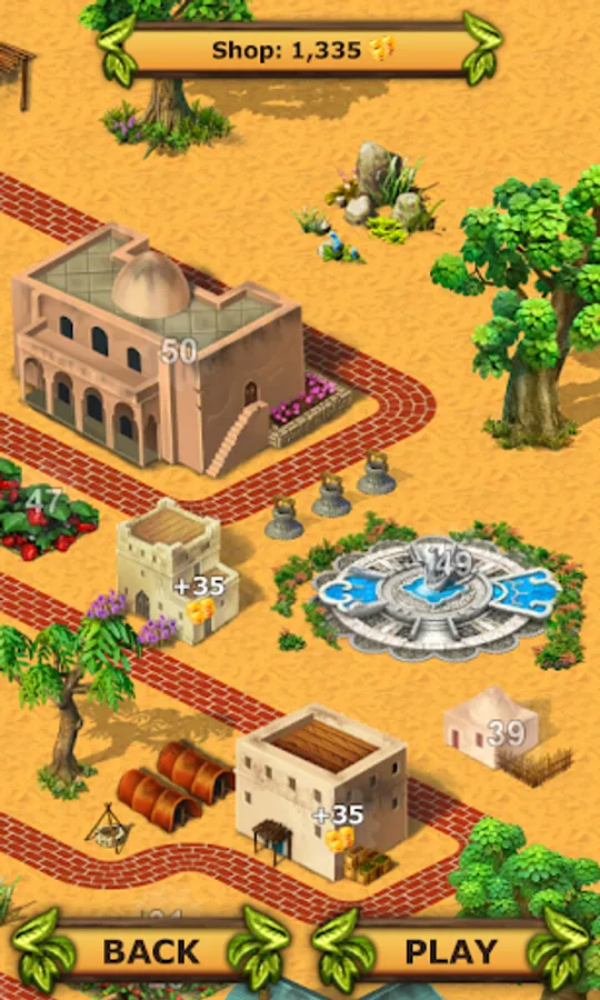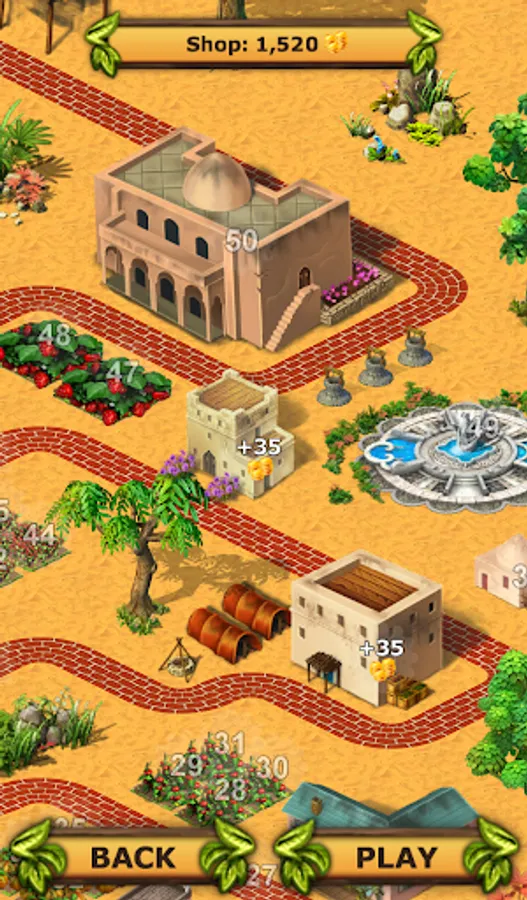 Play match 3 puzzles, where you crush fruits and vegetables, collect resources, break blocked cells and earn gold coins. Complete 50 levels of the game to create a beautiful oriental settlement in a desert oasis. Use boosters and power-ups to beat difficult levels. Enjoy rich oriental world, which changes while you progress through the game.