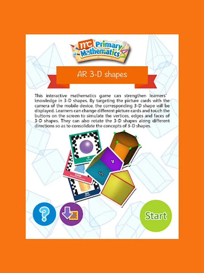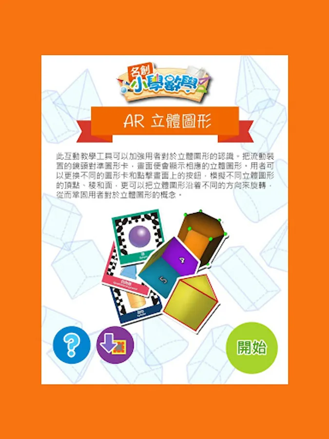使用應用程式時需要配合AR 立體圖形專屬的AR 活動卡使用,透過對立體圖形多角度的觀察來增強同學對立體圖形的辨別及分析能力。務求做到幫助老師教學的同時,亦能夠滿足讓學生在家中自學的需要。