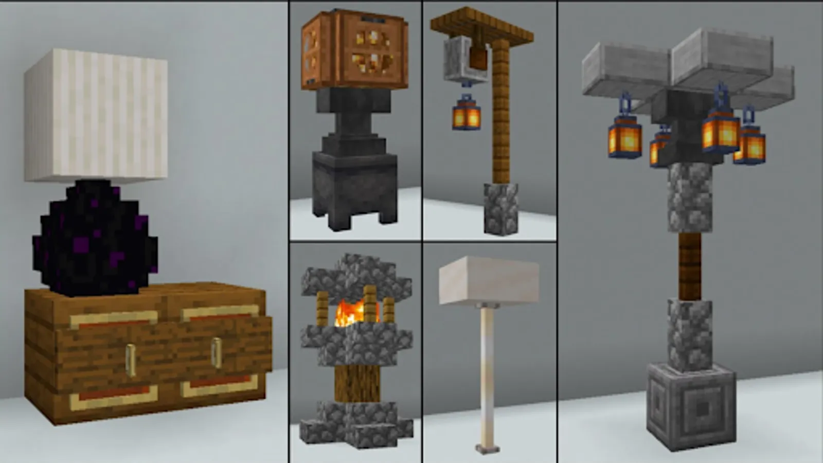 This mod contains Wooden Lamps, Copper lanterns, and other more varieties of light sources.