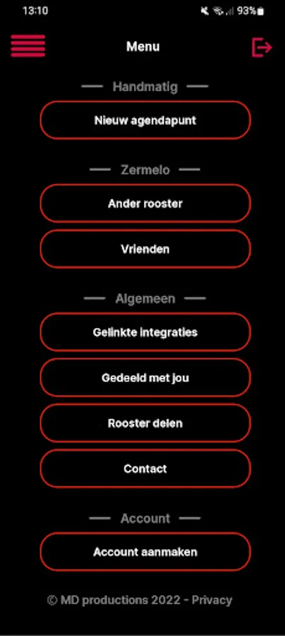 * An account is optional for privacy reasons, without an account RoosterCheck does not store any information about you on our servers and therefore sharing your timetable does not work since a RoosterCheck server is required to store information.