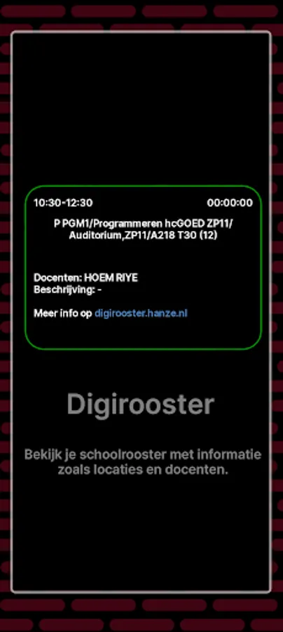 Roostercheck is your all-in-one timetable app, with integrations including Zermelo, PMT, Digirooster and all ical calendars. Manual agenda items can also be added. Viewing your schedule also works offline!