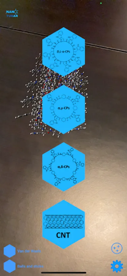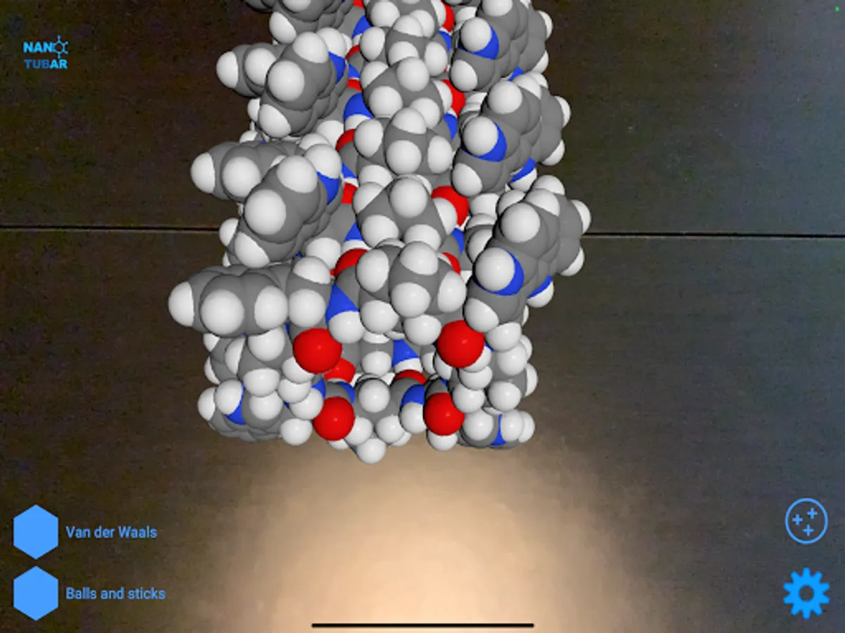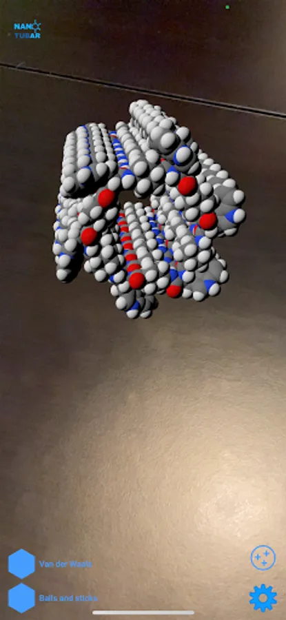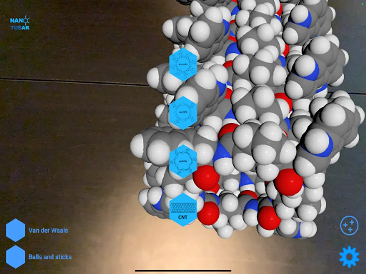 NanotubAR allows to visualize, using Augmented Reality technology, four types of nanotubes: a carbon nanotube (CNT) and three nanotubes formed by cyclic peptides. In each of them, natural alpha amino acids (L-tryptophan) are combined with synthetic residues, such as D-tryptophan (D, L-alpha-CPs), gamma amino acids (alpha, gamma-CPs) and delta amino acids (alpha, delta -CPs). In all these designs, the amino and carbonyl groups of the amino acids are oriented perpendicular to the plane of the cyclic peptides, with a suitable orientation to establish hydrogen bonds between the different units, and thus form a tubular structure.