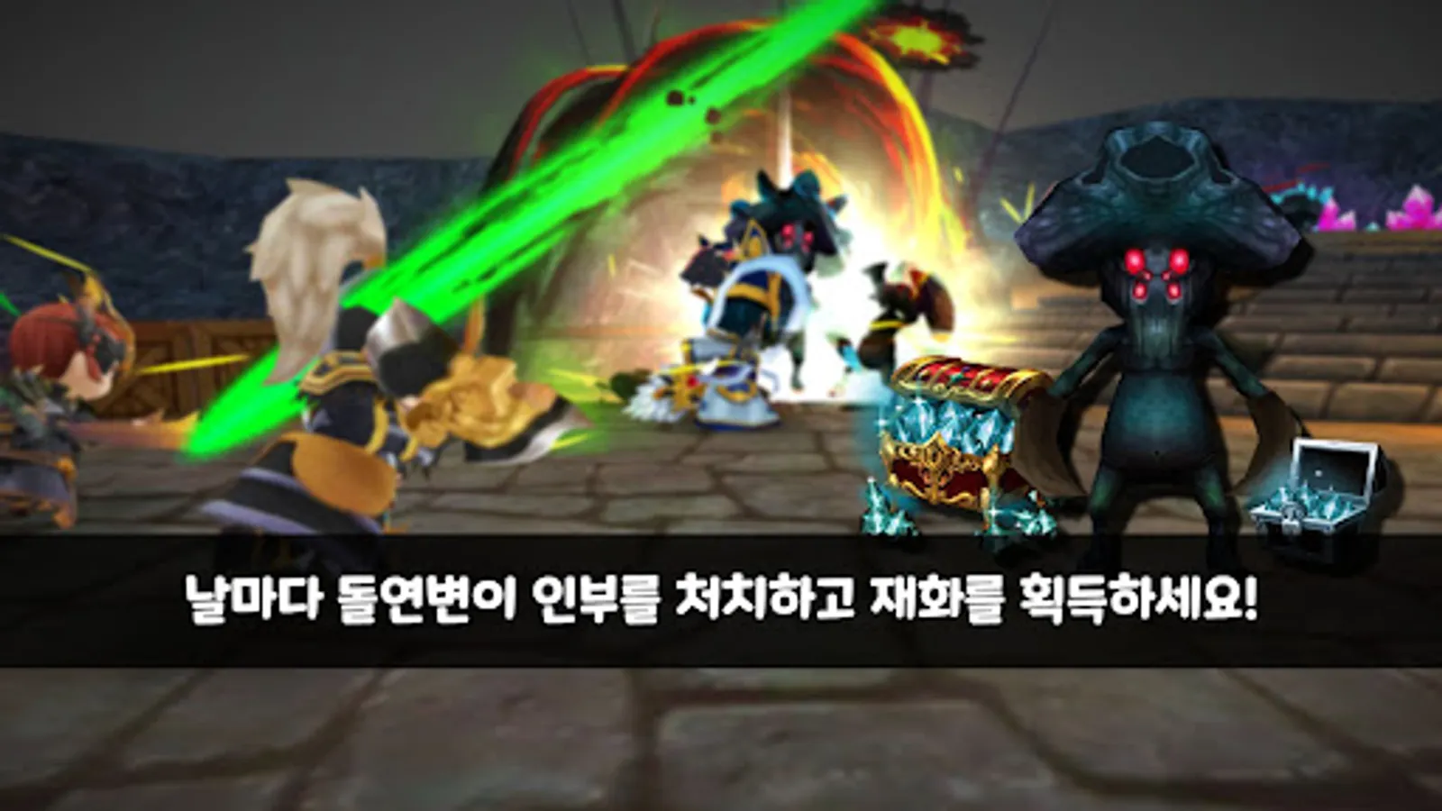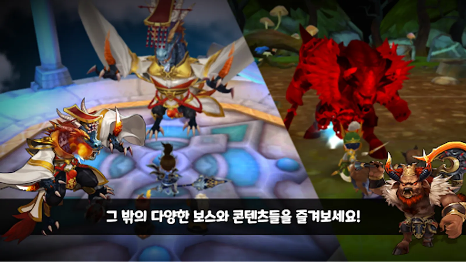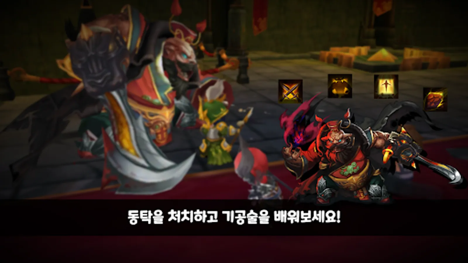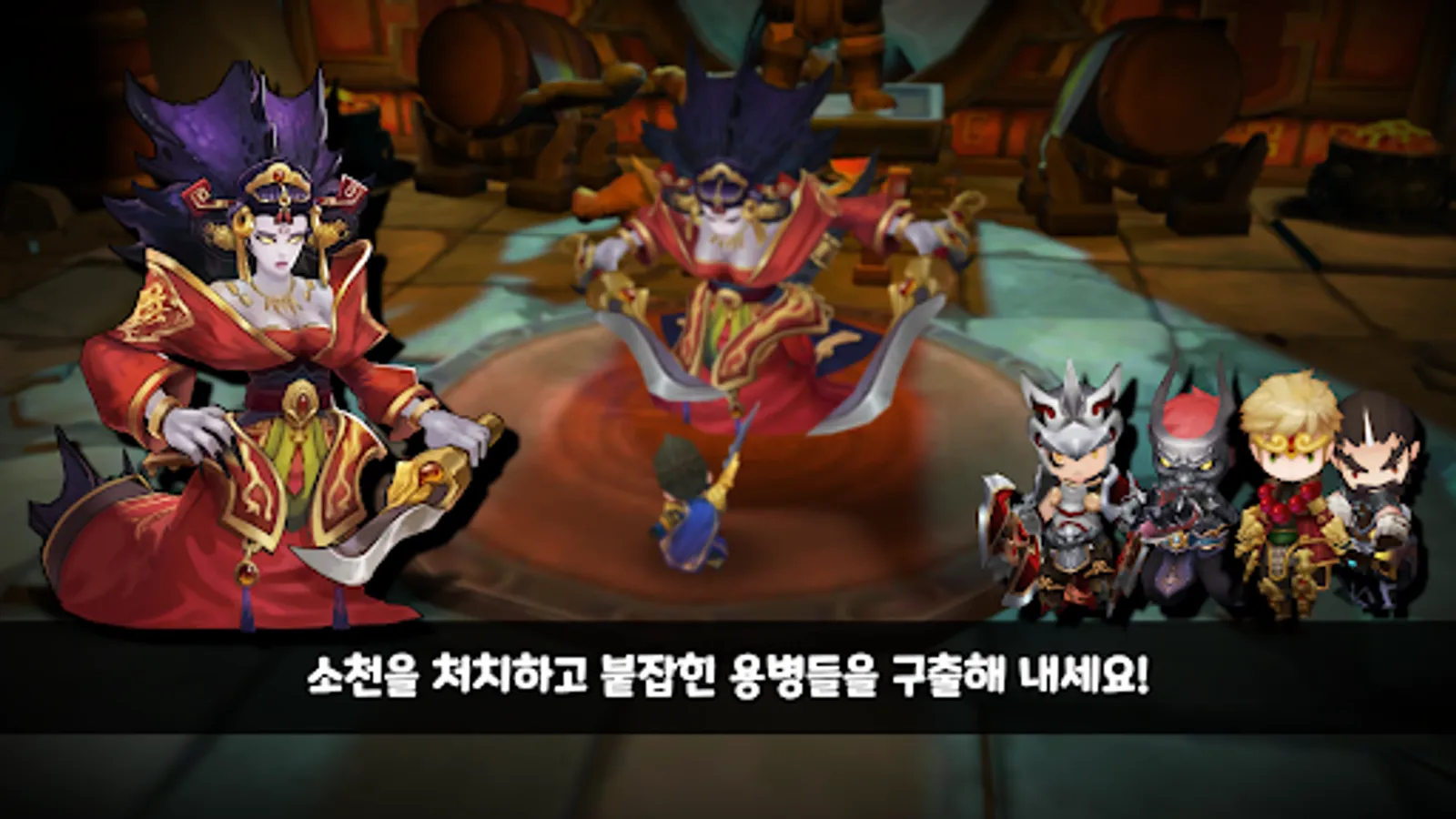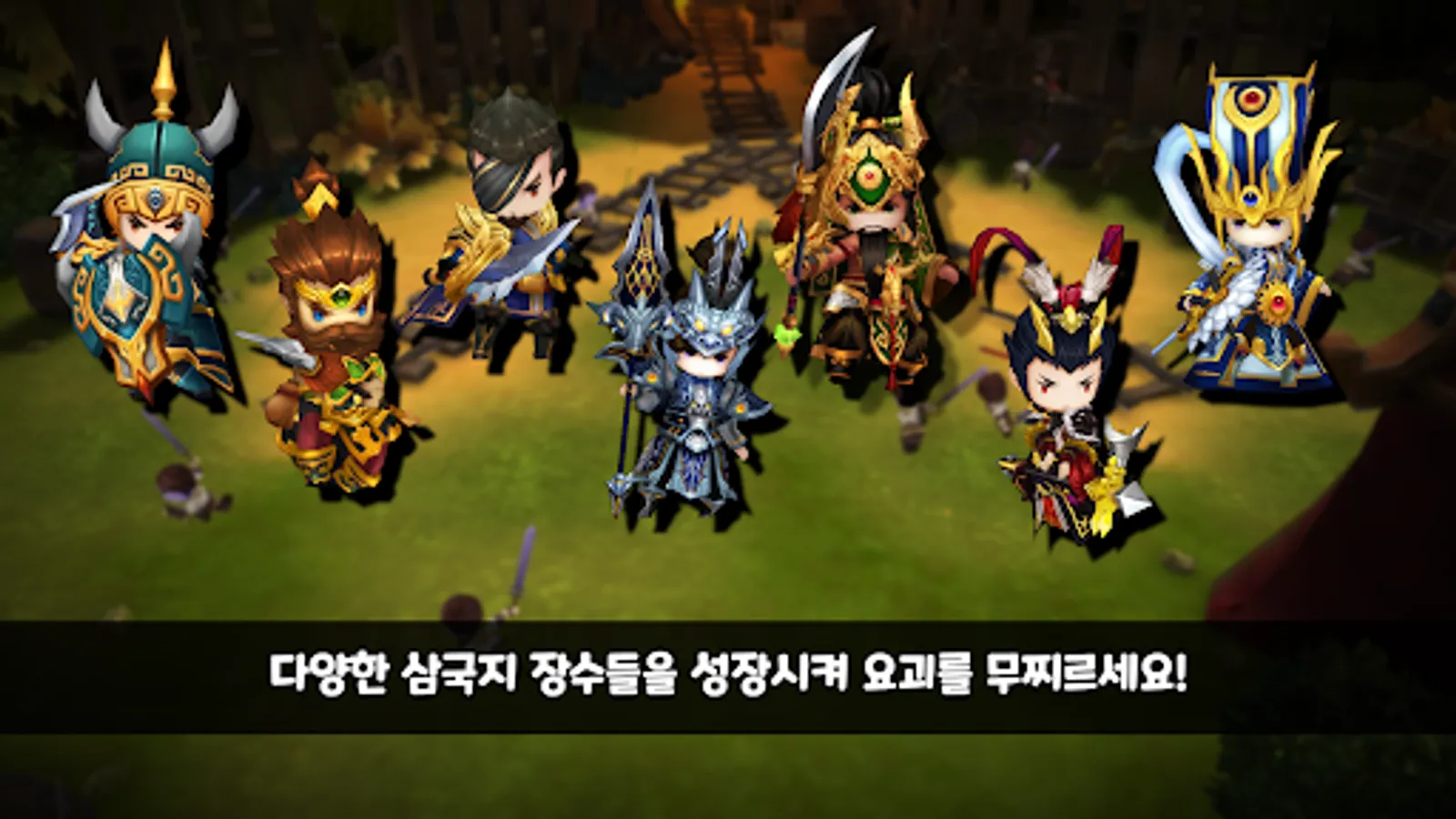 Defeat the monsters by acquiring and growing various heroes of the Three Kingdoms!