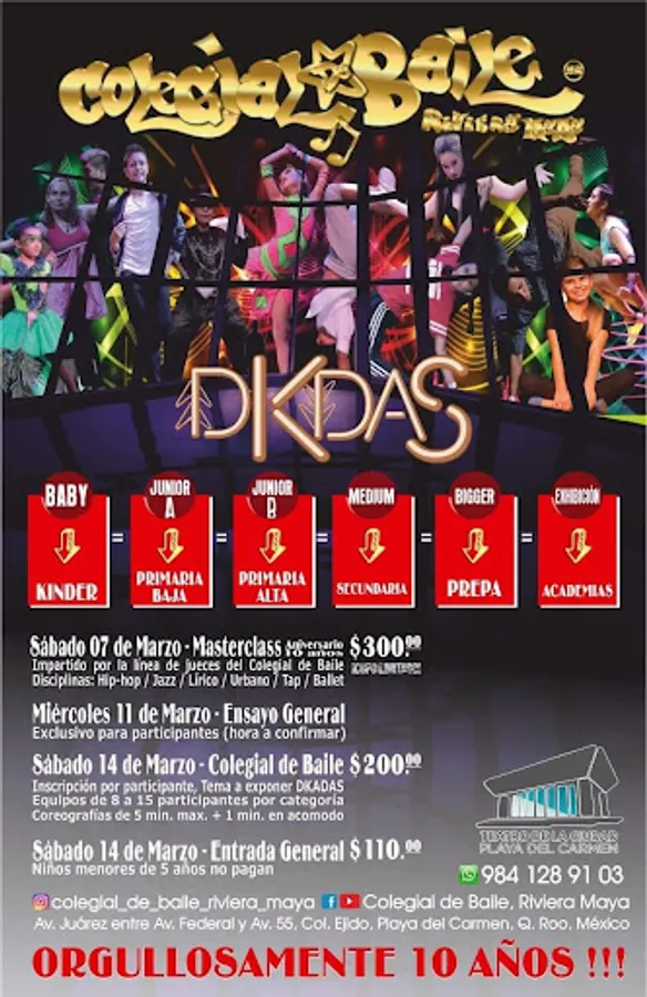 Dedicated solely for the realization of the Schoolboy of Dance, Riviera Maya. where we open each year a space for students for the team exhibition of a thematic dance in competition