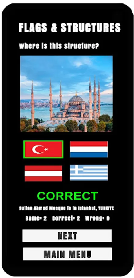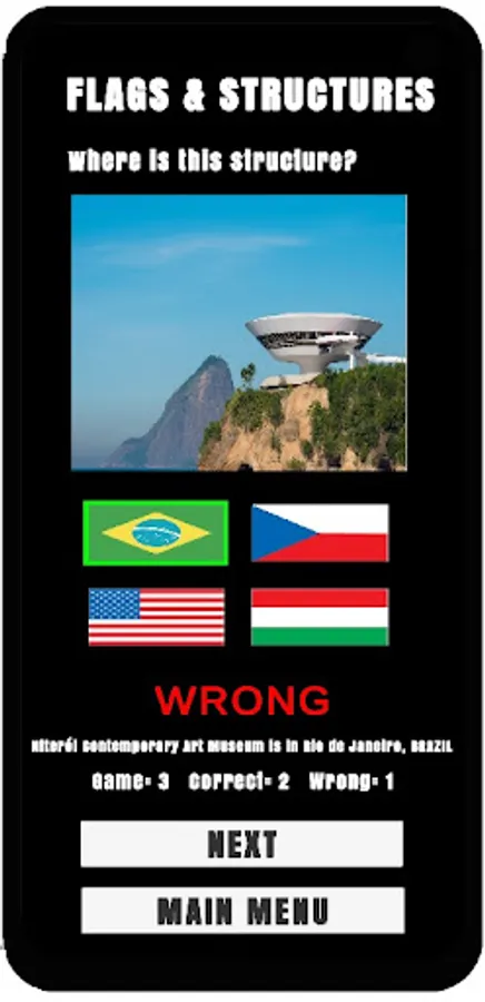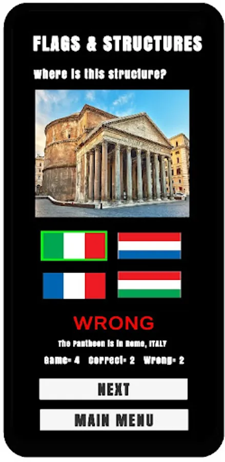 Flags and Structures is a so funny and educational game that asks you to guess, by looking given country flags, in which country, the most famous iconic structures from all over the world are located.