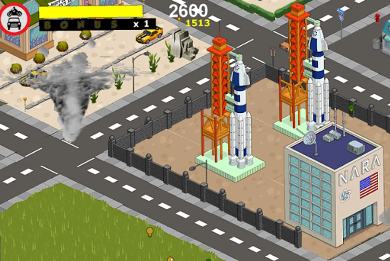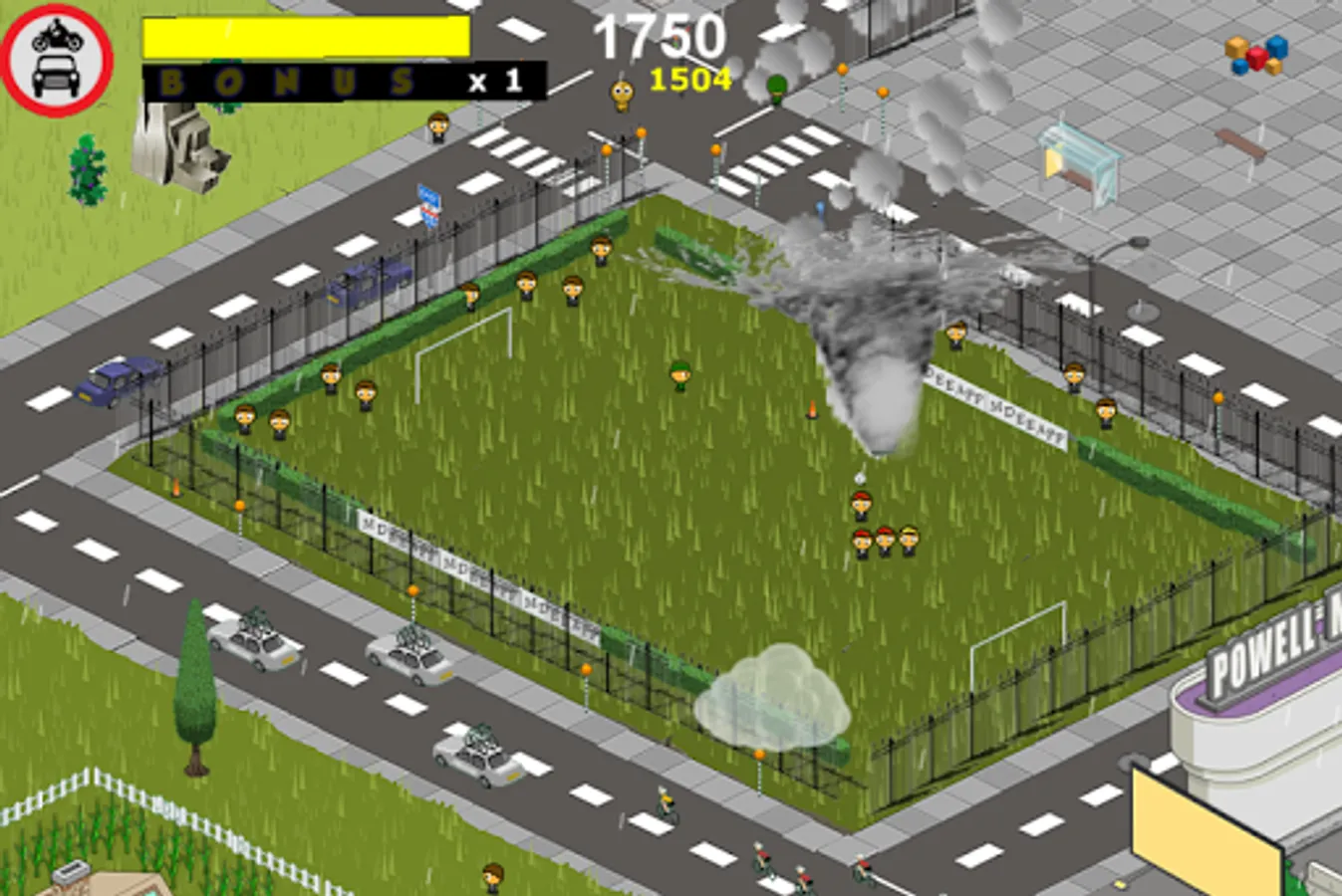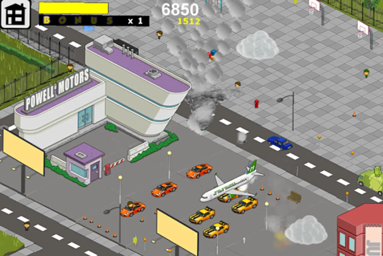 Take full control of this power and destroy as many things as possible, grow from an EF2, EF3, EF4 to become a giant EF5 tornado that eats buildings, trees, cars, barns and anything else bad luck to be on its way!