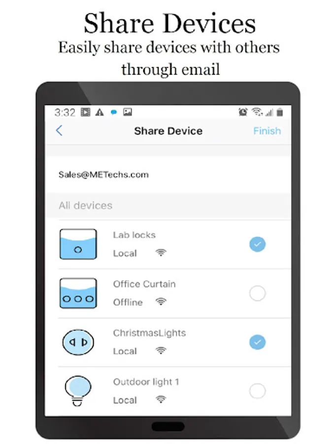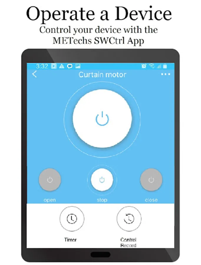With the app and METechs SWCtrl control switch, relay, smart plug, light..., you can control motorized curtain rods, motorized roller shade systems, tubular roller motors, electric locks, lights, appliances, and other automation devices from anywhere.