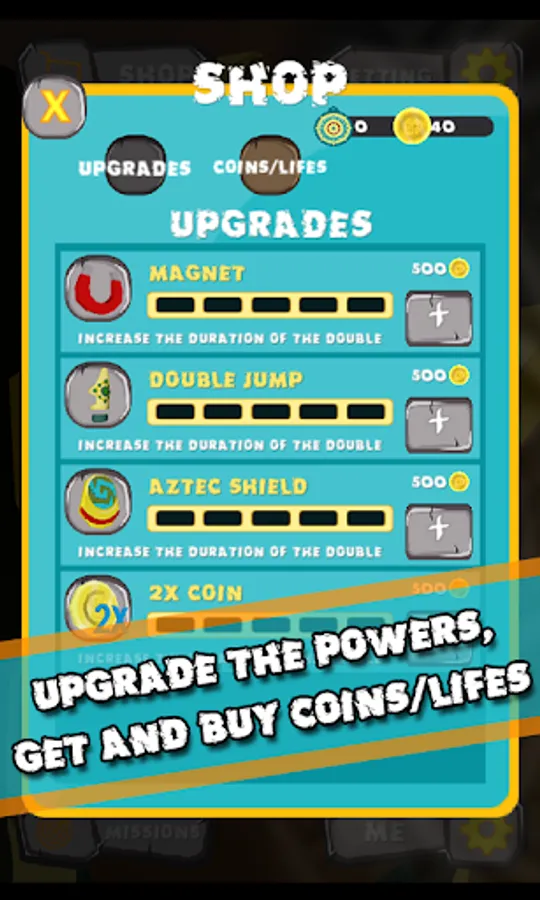 Collect all the Aztecs coins possible to enhance the powers and buy Aztecs medals ..