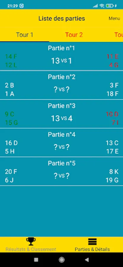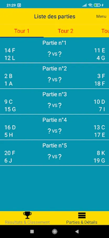 Once your tournament is set up, the application will automatically create matches and allocate players in the most optimized way.