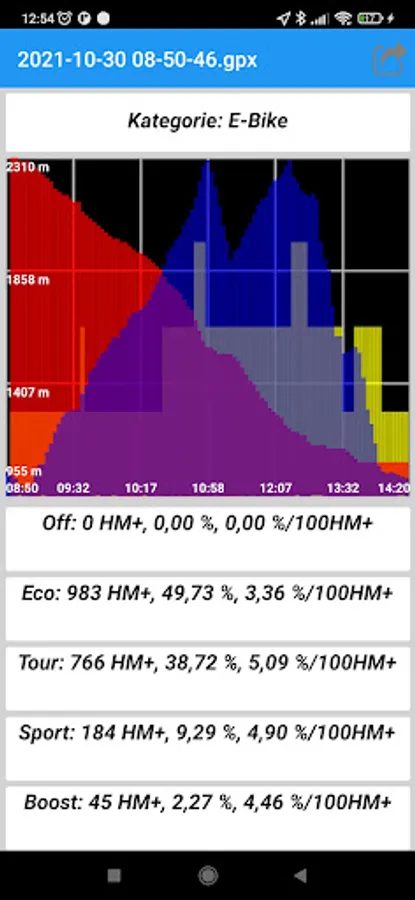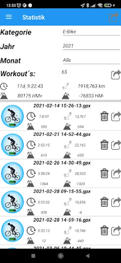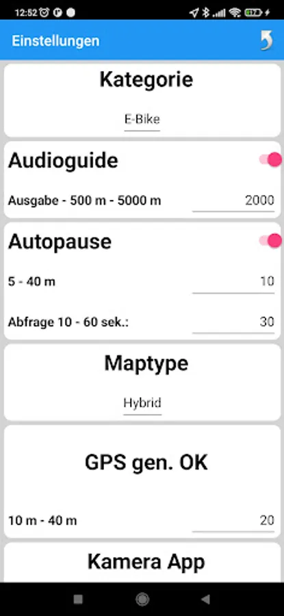 You can then create a detailed analysis based on the statistics. It is possible to connect a BT Heartrate and a BT Caderance Sensor. You also have the following setting options.
