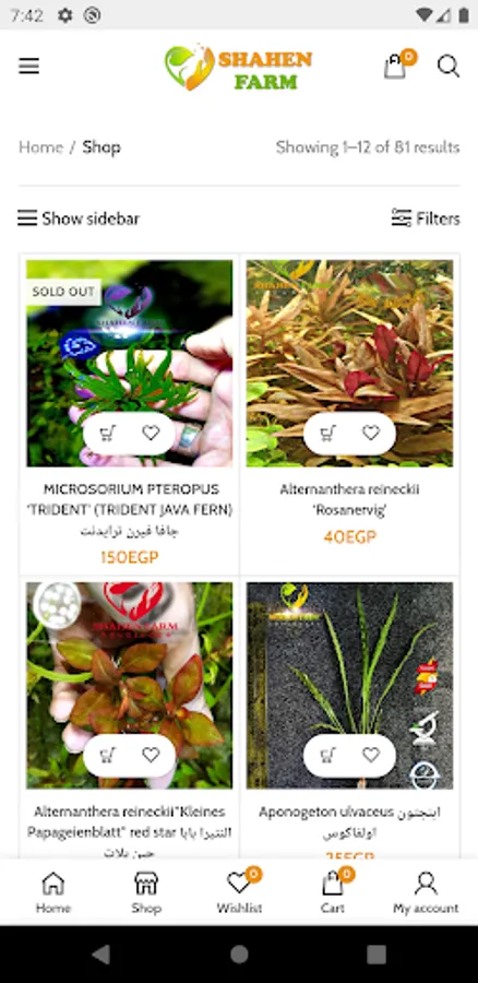 كل ما تحتاجة لحوضك النباتى من انواع كثيره على كافة المستوايات .
