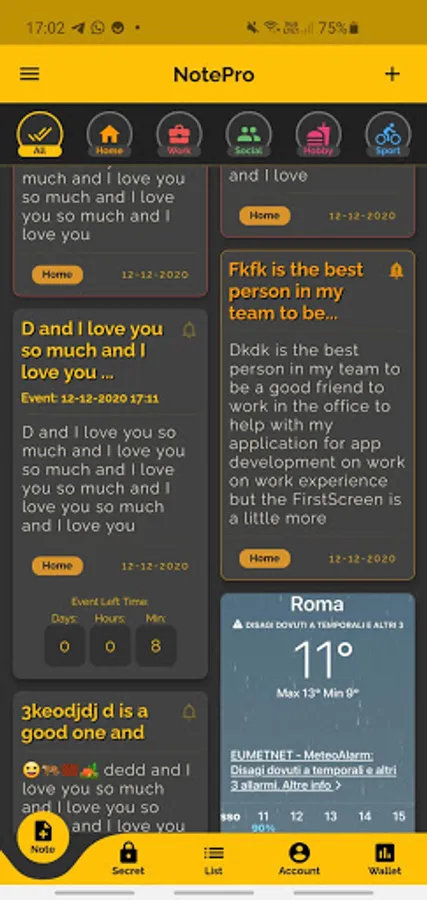 Save your Notes, you can add images, a notification date, a specific category and choose the type of priority.