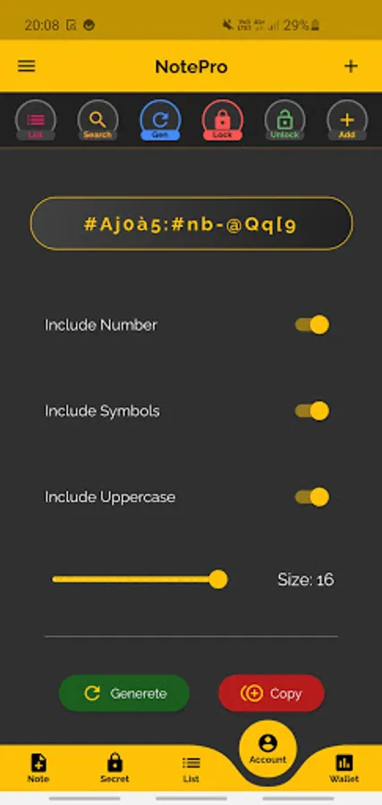Save your Account details, and secure them with a PIN code. You can extract, edit and delete data are after entering the secure PIN. You can use the password generating tool.