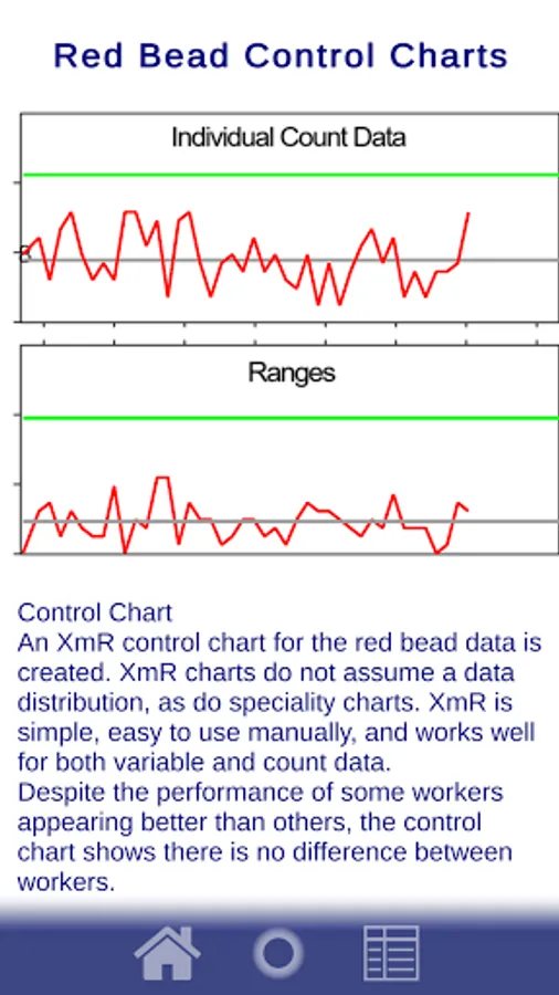 Most workers want to do their best but are limited by the system. Poor managers focus on production targets. In the Red Bead Experiment, the target is to produce a maximum number of white beads. Workers are blamed or rewarded, despite their having no control over the results they produce. The app shows that there will always be workers that appear to be performing better than others but the ranking of workers will vary from period to period.