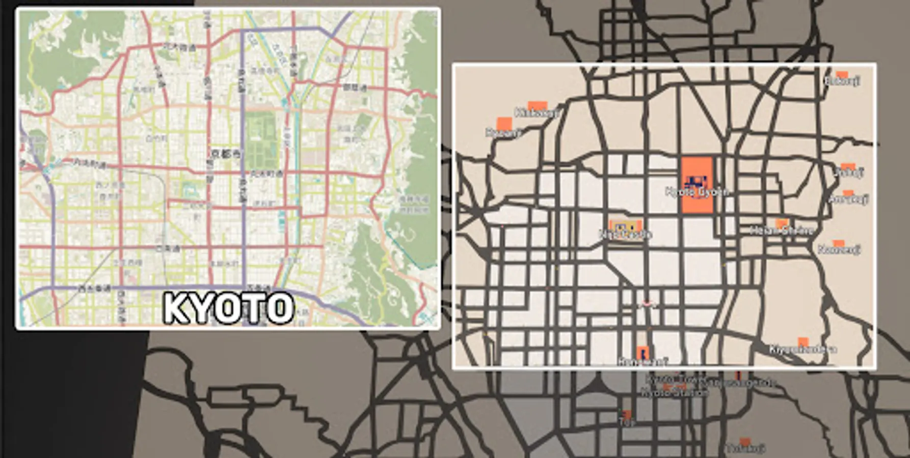 - Place buildings in Kyoto