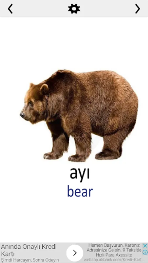 You can read the names of animals that can show them visually in Turkish and English under the picture and you can see how the animal makes a sound by clicking on it