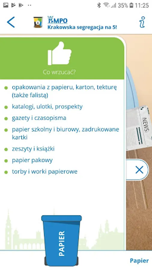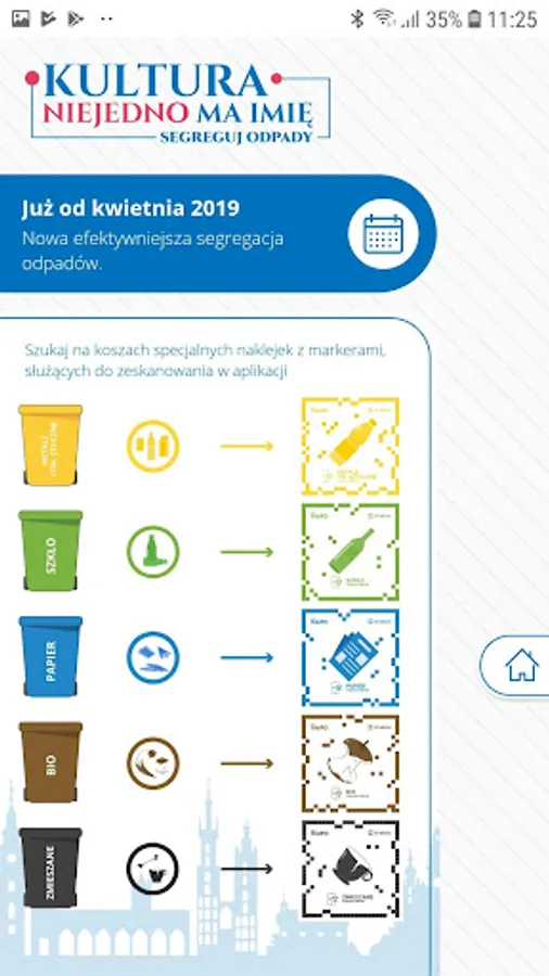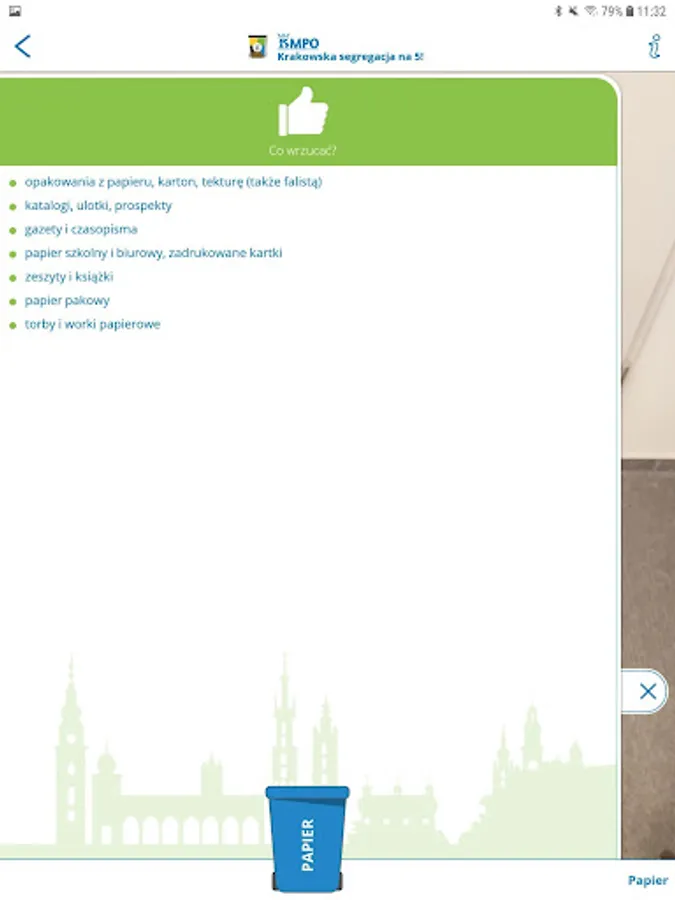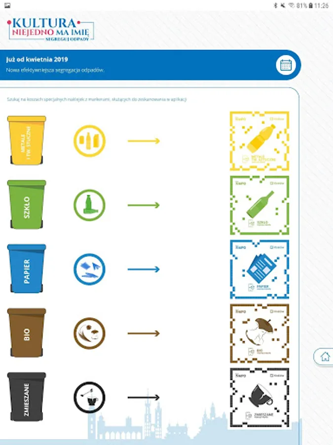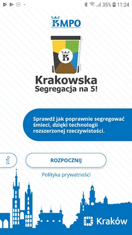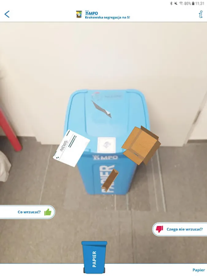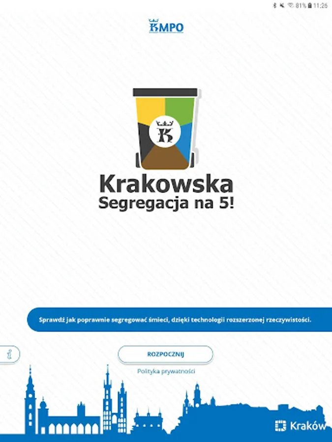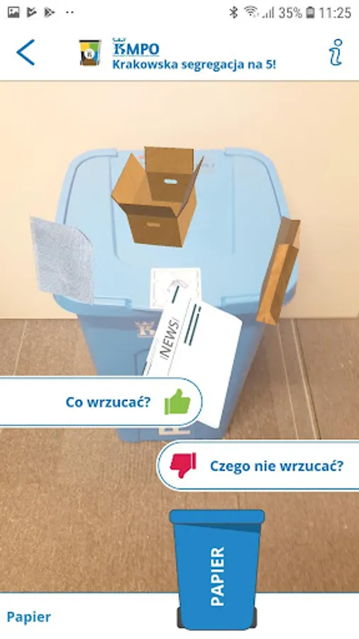 The "Krakow segregation for 5!" Application is a modern tool based on augmented reality facilitating the proper disposal of waste. Thanks to it, you can be sure that every waste will go to the right basket.