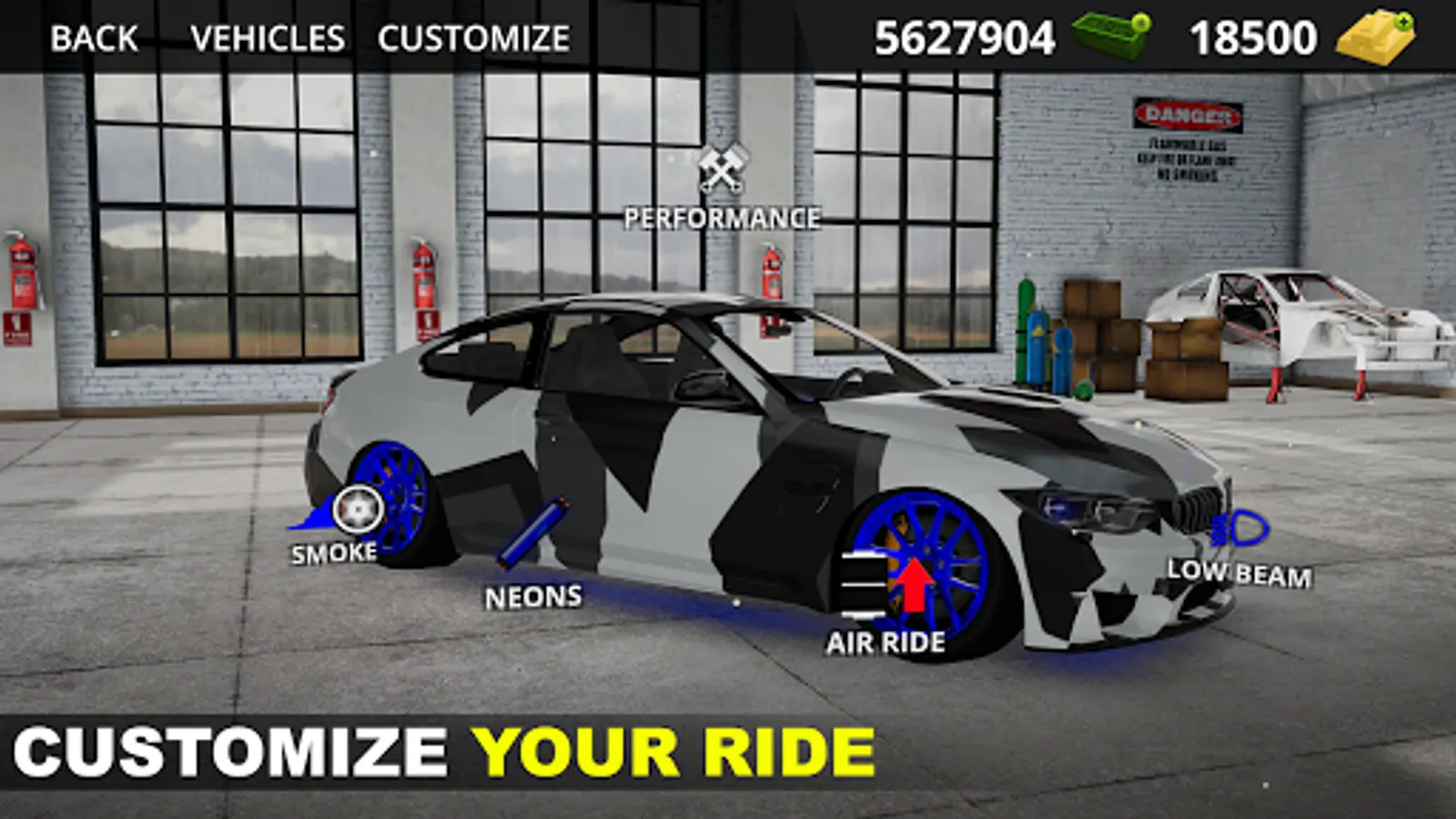• Car customization: air ride system | multi-colored car underglow kit | multi-colored headlights | multi-colored tire smoke | customizable license plate | gloss, matte and chrome paint colors and wraps | 49 wheel models with nearly 400 color combinations | paintable brake calipers | performance upgrades